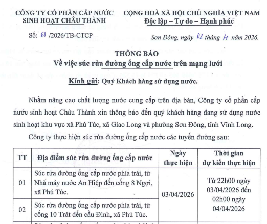 Kết quả kiểm nghiệm nước (Tháng 02.2026)