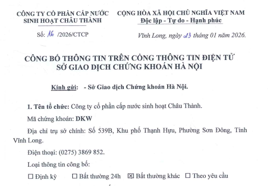 Công ty Cổ Phần cấp nước sinh hoạt Châu Thành