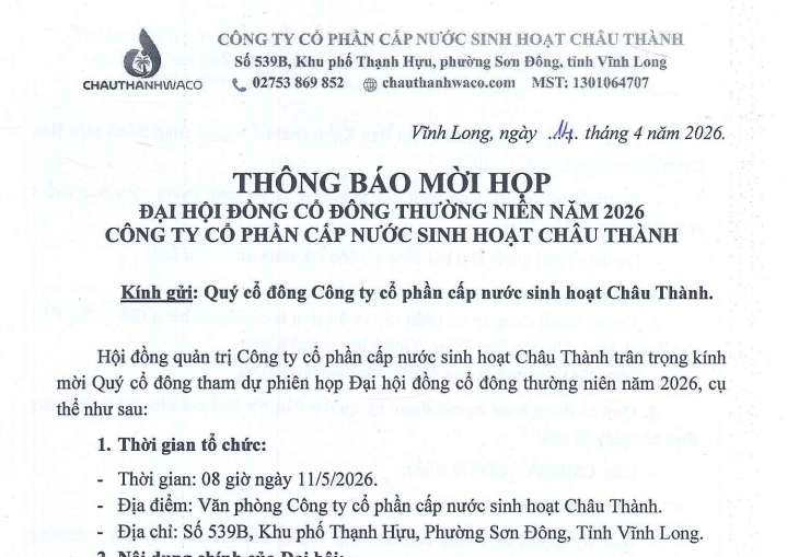 Công ty Cổ Phần cấp nước sinh hoạt Châu Thành